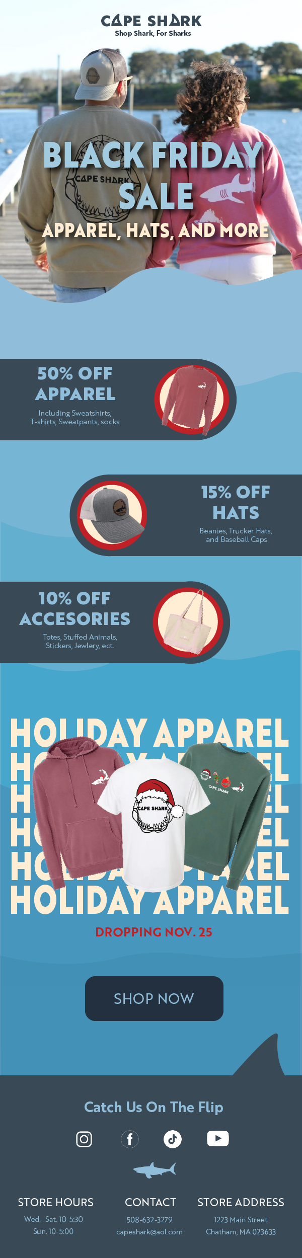 The Cape Shark Holiday Apparel Launch project aimed to increase visibility for a specific product line within the competitive holiday market.