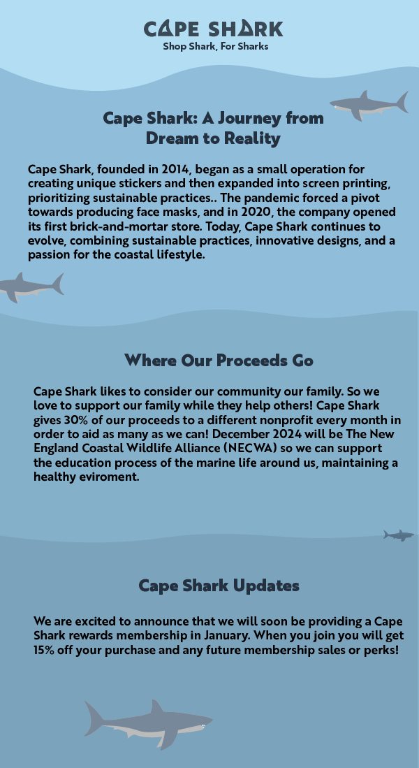 Cape Shark, a small apparel business on the South Shore of Massachusetts, founded by a couple with expertise in business and fashion, offers versatile apparel in a diverse color palette. While personable, the brand needed a stronger online presence.